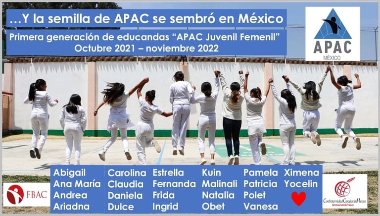 El método APAC propicia un cambio de mentalidad mediante un proceso integral restaurativo, atendiendo los ejes de la reinserción social: el trabajo, la capacitación para el mismo, la educación, la salud y el deporte; además de la responsabilidad social, el fortalecimiento espiritual, la atención a la familia y la cultura de la legalidad y la paz, en un ambiente digno y dignificante, con estricto apego a los derechos humanos.
